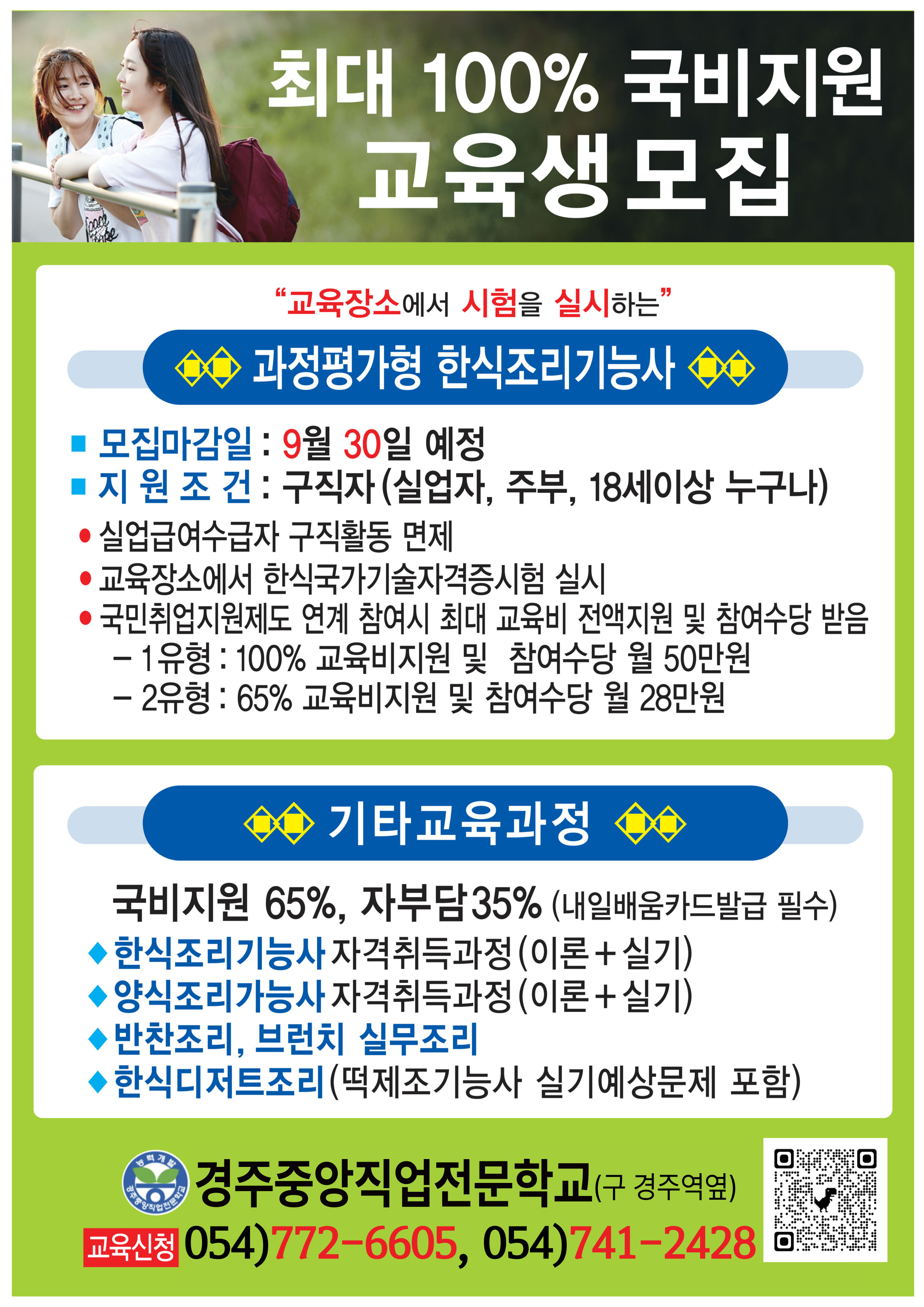 ◆ 훈련비 안에 재료비, 교재비 포함됩니다